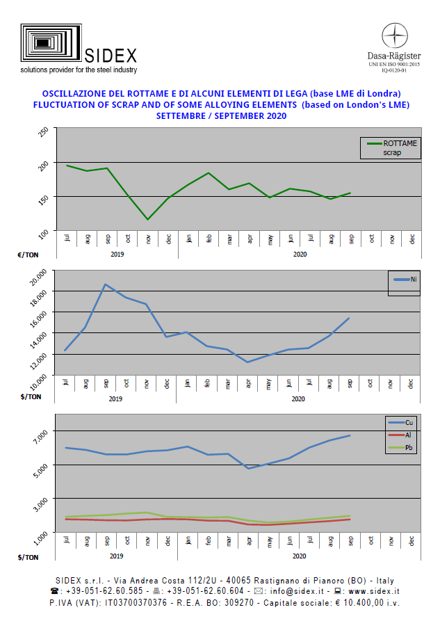 We have updated the file Fluctuation of scrap and main alloying elements to September 2020. You can download it by clicking on the image below.